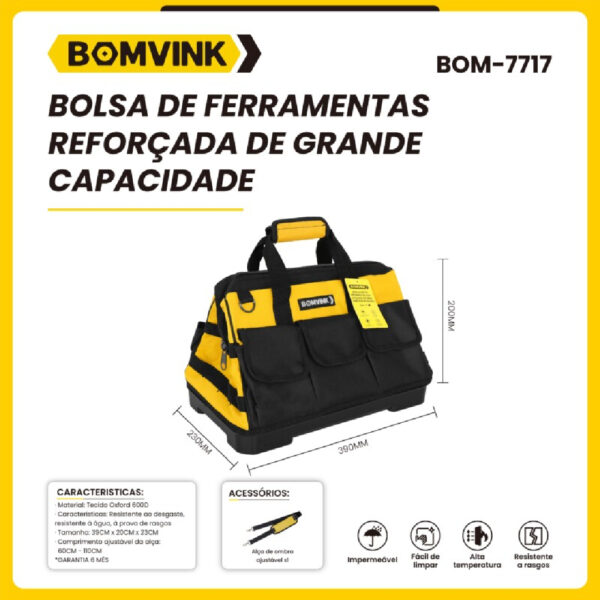 Bolsa de Ferramentas Reforçada Impermeável com Base Resistente BOMVINK BOM-7717